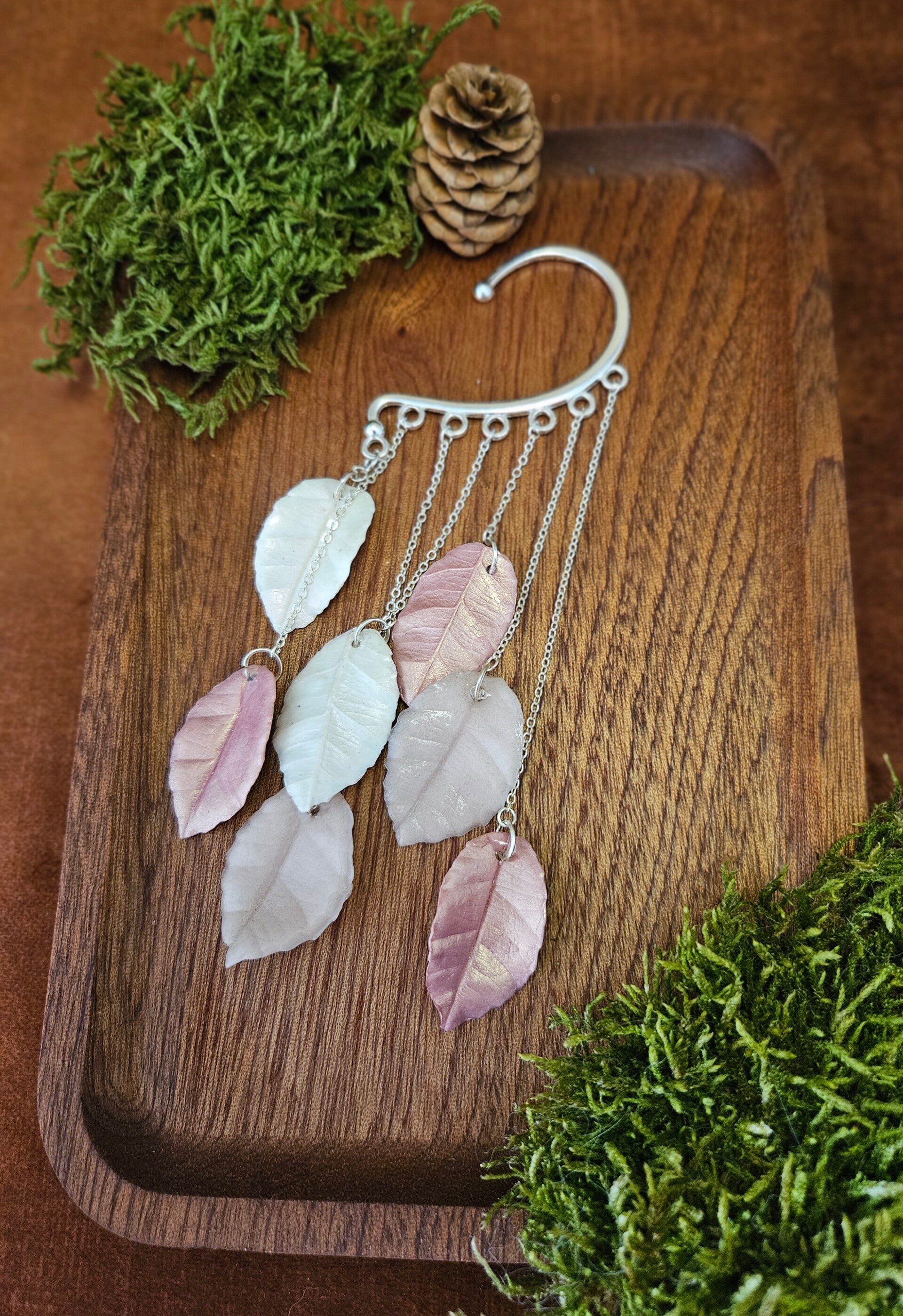 Add a touch of elegance to your look with our exquisite Sparkling Clay Leaves Earcuff. Designed to dazzle, this unique piece features delicate clay leaves that gracefully dangle from fine chains, catching the light with every movement.