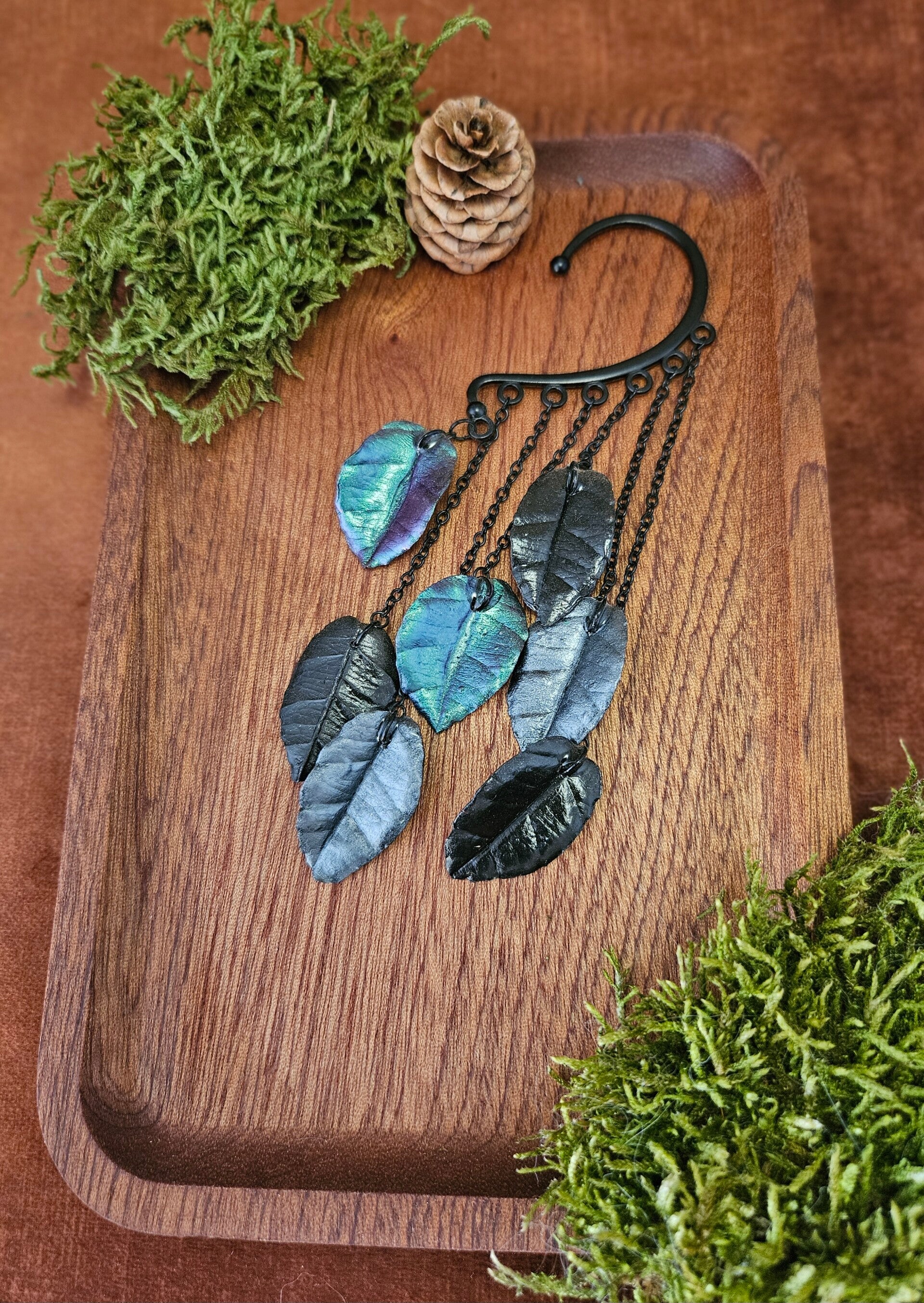 Add a touch of elegance to your look with our exquisite Sparkling Clay Leaves Earcuff. Designed to dazzle, this unique piece features delicate clay leaves that gracefully dangle from fine chains, catching the light with every movement.