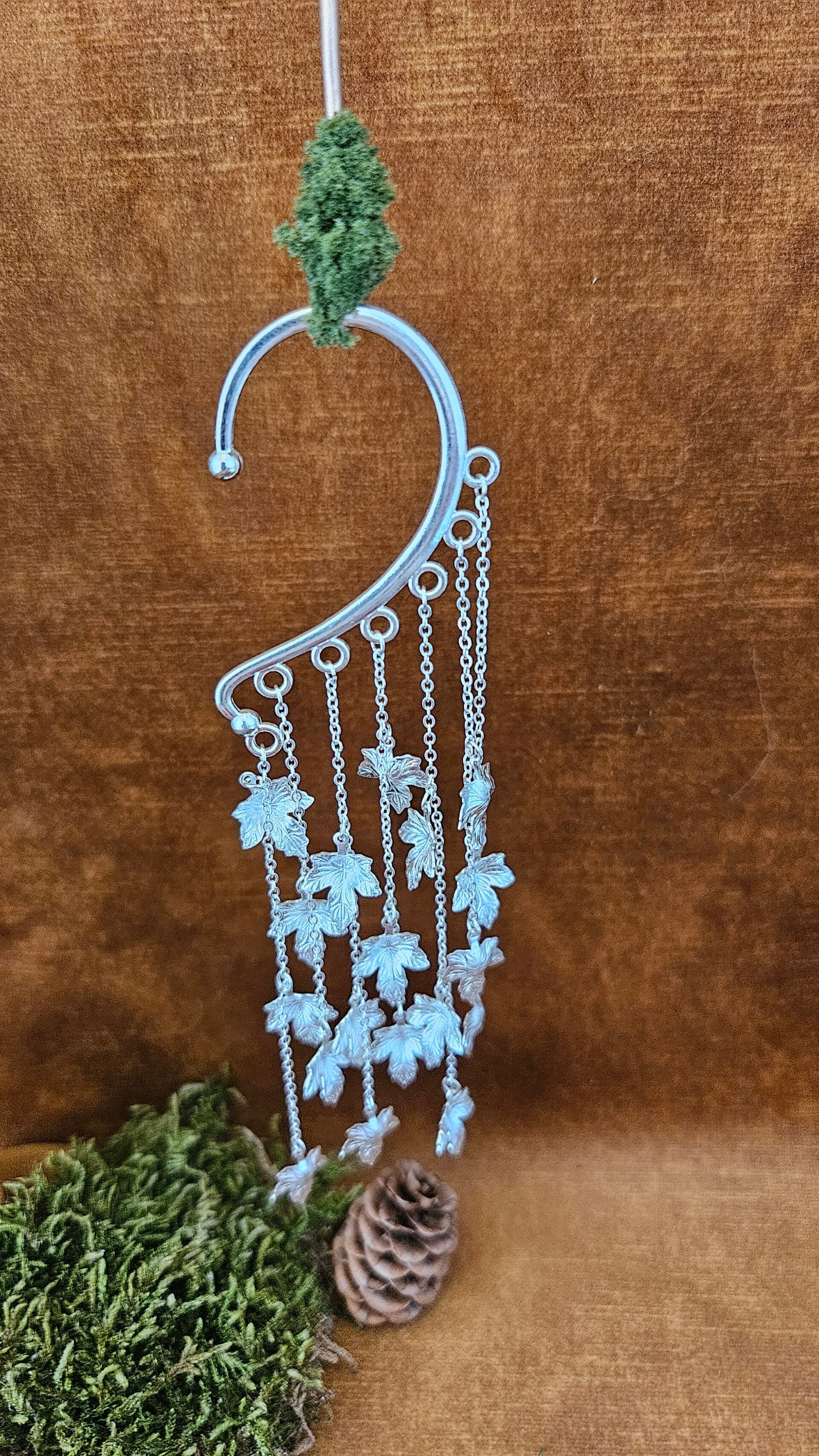 Elevate your style with our Chiming Metal Leaves Earcuff. This stunning accessory features delicate metal leaves that gracefully sway, adding a touch of elegance to any look.