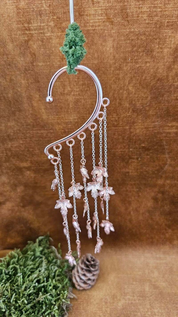 Elevate your style with our Chiming Metal Leaves Earcuff. This stunning accessory features delicate metal leaves that gracefully sway, adding a touch of elegance to any look.