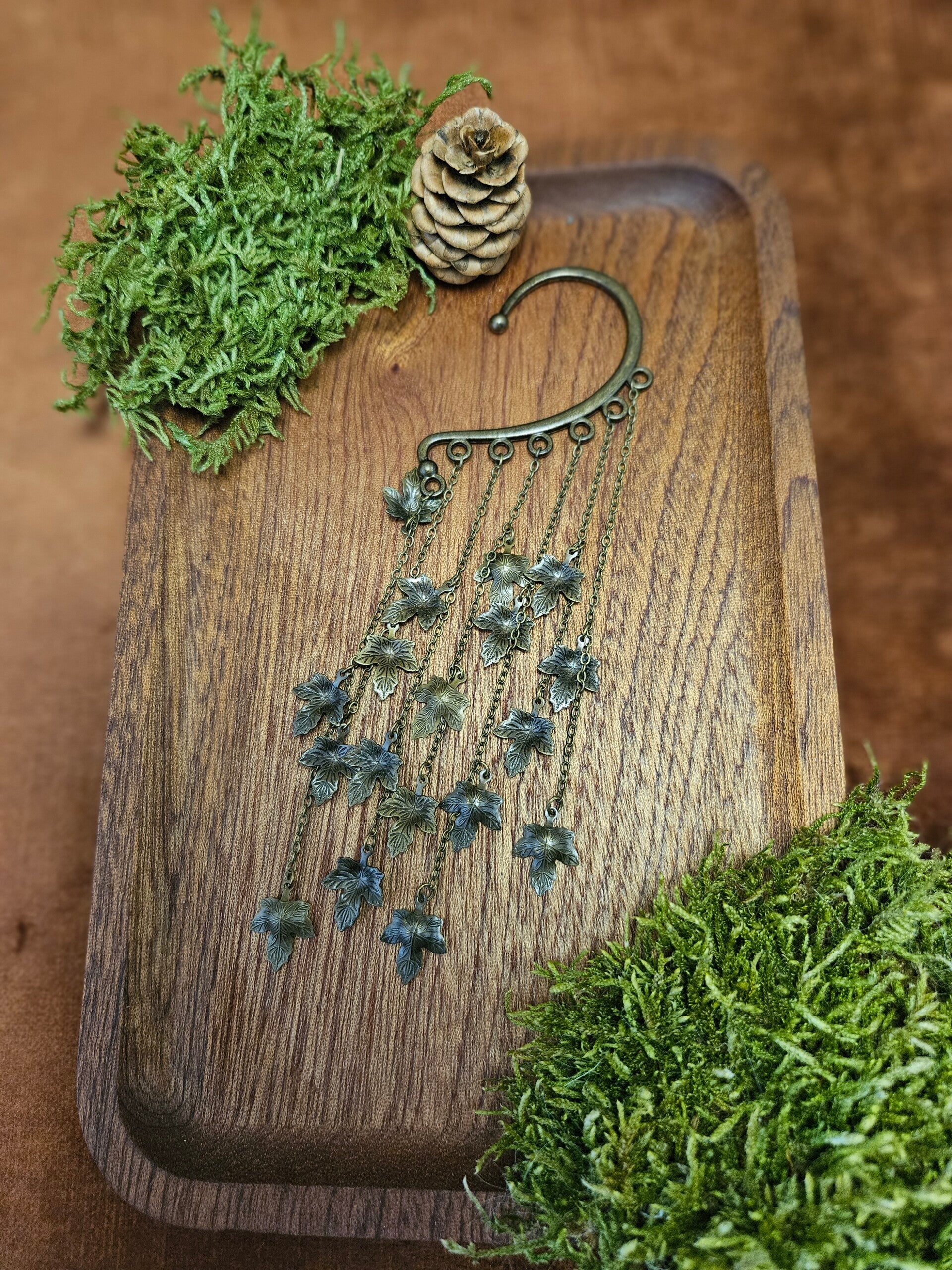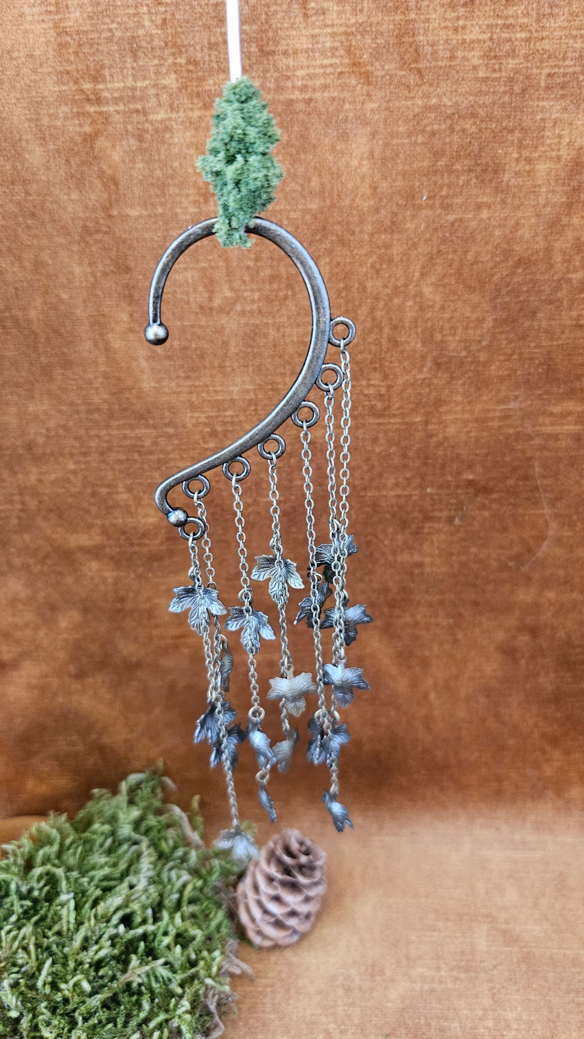 Elevate your style with our Chiming Metal Leaves Earcuff. This stunning accessory features delicate metal leaves that gracefully sway, adding a touch of elegance to any look.